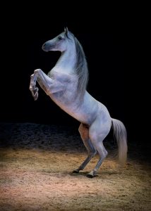 Este caballo árabe es un campeón, un ganador, y él lo sabe. Ha sido galardonado en varias ocasiones como campeón de la raza árabe en Polonia montado por nuestra amazona Marta, con quien tiene una complicidad excepcional. Tiene 14 años y ha actuado con nosotros en Apassionata y Kalazagan.